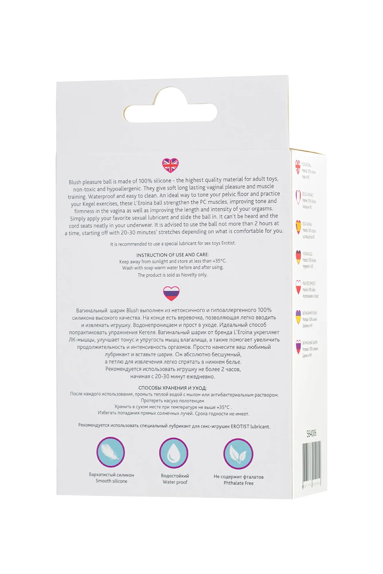 Вагинальный шарик Blush выполнен из нетоксичного и гипоаллергенного 100% силикона высокого качества. На конце есть веревочка, позволяющая легко вводить и извлекать игрушку. Водонепроницаем и прост в уходе. Идеальный способ попрактиковать упражнения Кегеля. Вагинальный шарик от бренда L’Eroina укрепляет ЛК-мышцы, улучшает тонус и упругость мышц влагалища, а также помогает увеличить продолжительность и интенсивность оргазмов. Просто нанесите ваш любимый лубрикант и вставьте шарик. Он абсолютно бесшумный, а петлю для извлечения легко спрятать в нижнем белье. Общий длина: 10,5 см Диаметр: 3,1 см Вес 65 гр.