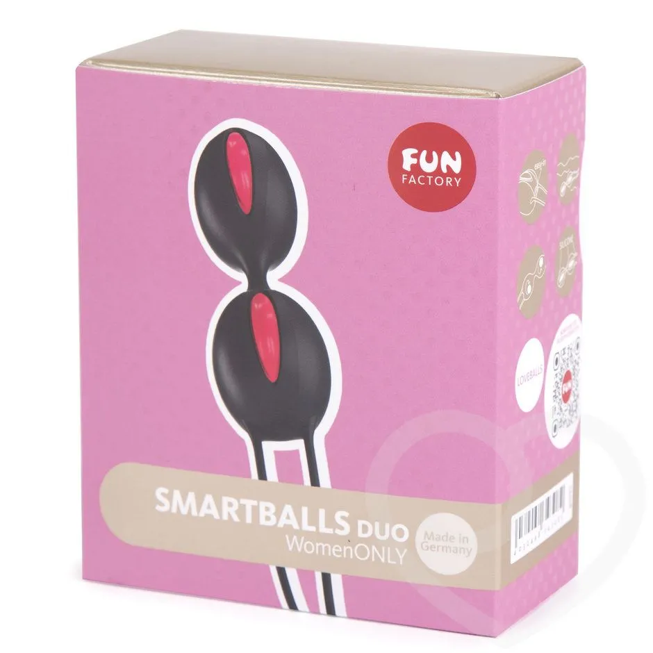 Парные шарики для тренировки мышц влагалища изготовлены из медицинского силикона и не обладают специфическим запахом. Для очистки достаточно теплой воды и мыла. Шарики оснащены виброэлементами, не требующими батареек, так как они реагируют на движение. Шарики полностью водонепроницаемы и подходят для использования в ванной. Шнур в основании игрушки обеспечивает удобное и безопасное извлечение. Для эффективной тренировки интимных мыщц достаточно заниматься повседневными делами, используя Smartballs duo.