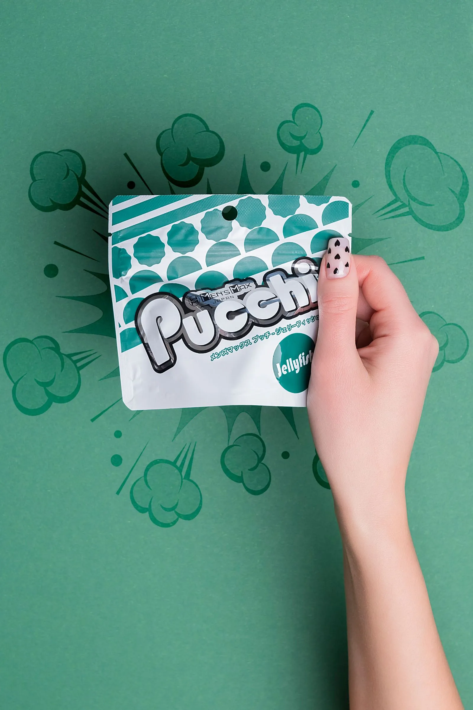 Обновленный карманный мастурбатор MensMax Pucchi Jellyfish имеет увеличенный размер, улучшенную эластичность, более четкий рельеф, и выделяет еще больше смазки – берите его с собой куда угодно. Все что вам нужно – это мастурбатор и немного воды. Самоувлажняющийся мастурбатор невероятно удобен в командировках, путешествиях и в повседневной жизни. Благодаря запатентованной японской технологии, инновационный материал +Wetch при взаимодействии с водой выделяет густой гель, усиливающий скольжение. Даже во время длительного массажа пениса гель не скатывается и не высыхает. Достаточно добавить немного воды, чтобы испытать полный спектр эмоций от интимного удовольствия. Многоразовая непрозрачная упаковка с замочком-клапаном служит мешочком для хранения. Упругий, но эластичный материал подходит для мужчин с любыми размерами пениса. Материал игрушки тактильно приятный и быстро принимает температуру тела. Чтобы усилить ощущения, добавьте теплую воду и наслаждайтесь температурными играми. MensMax Pucchi производят на новейшем оборудовании в Японии, что гарантирует качество и безопасность использования. Мастурбатор Pucchi Jellyfish представляет собой мягкую трехъярусную елочку с одним отверстием. Внешняя сторона гладкая и нежная, а внутри комбинированный рельеф из полусфер, выпуклостей и ребер, которые обеспечивают дополнительный массаж пениса, и особенно ярко ощущаются при стимуляции головки. Чем глубже проникновение, тем ощутимее стимуляция. Инструкция: Достаньте мастурбатор из упаковки и налейте в него немного воды (чайную ложку). Старайтесь не намочить внешнюю сторону игрушки, чтобы смазка не мешала вам в процессе. Распределите образовавшийся гель по внутренней поверхности девайса. Начните с массажа головки, так вы сможете получить максимальное наслаждение от рельефа и настроиться на нужный лад. Совершайте вращательные движения по часовой стрелке или против нее. Для предварительных ласк партнерши выверните мастурбатор наизнанку и наденьте на пальцы. После игр промойте Pucchi водой или средством для очистки игрушек. Когда израсходуете смазку мастурбатора, выбирайте лубриканты на водной основе.