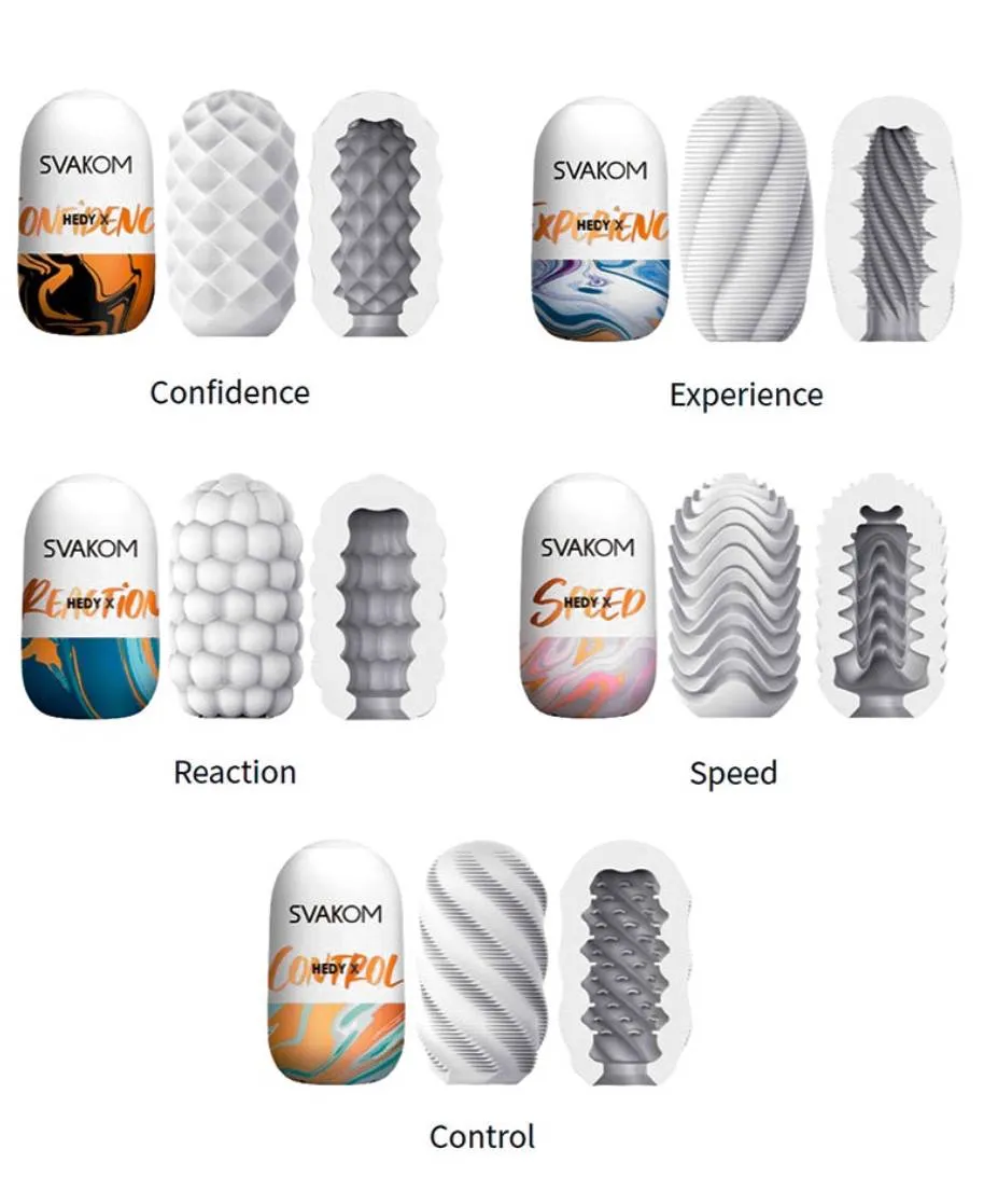 Серия Hedy X - это коллекция из 5 мастурбаторов с различной текстурой, каждый из которых тщательно разработан компанией Svacom для вашего максимального удовольствия. Разверните, добавьте смазку на водной основе и наслаждайтесь! Каждый из них можно использовать до 10 раз, двусторонняя фактура приносит двойное удовольствие – просто выверните наизнанку и попробуйте ещё разок! Мастурбаторы сделаны из ультрамягкого материала, он создаёт реалистичное ощущение контакта с вагиной, универсальный размер подходит всем, потому что растягивается ровно на столько сколько вам нужно. После использования можно легко очистить с помощью тёплой воды и мягкого мыла. Выбирайте каждый раз фактуру по настроению, и получайте свою порцию удовольствия независимо ни от кого!