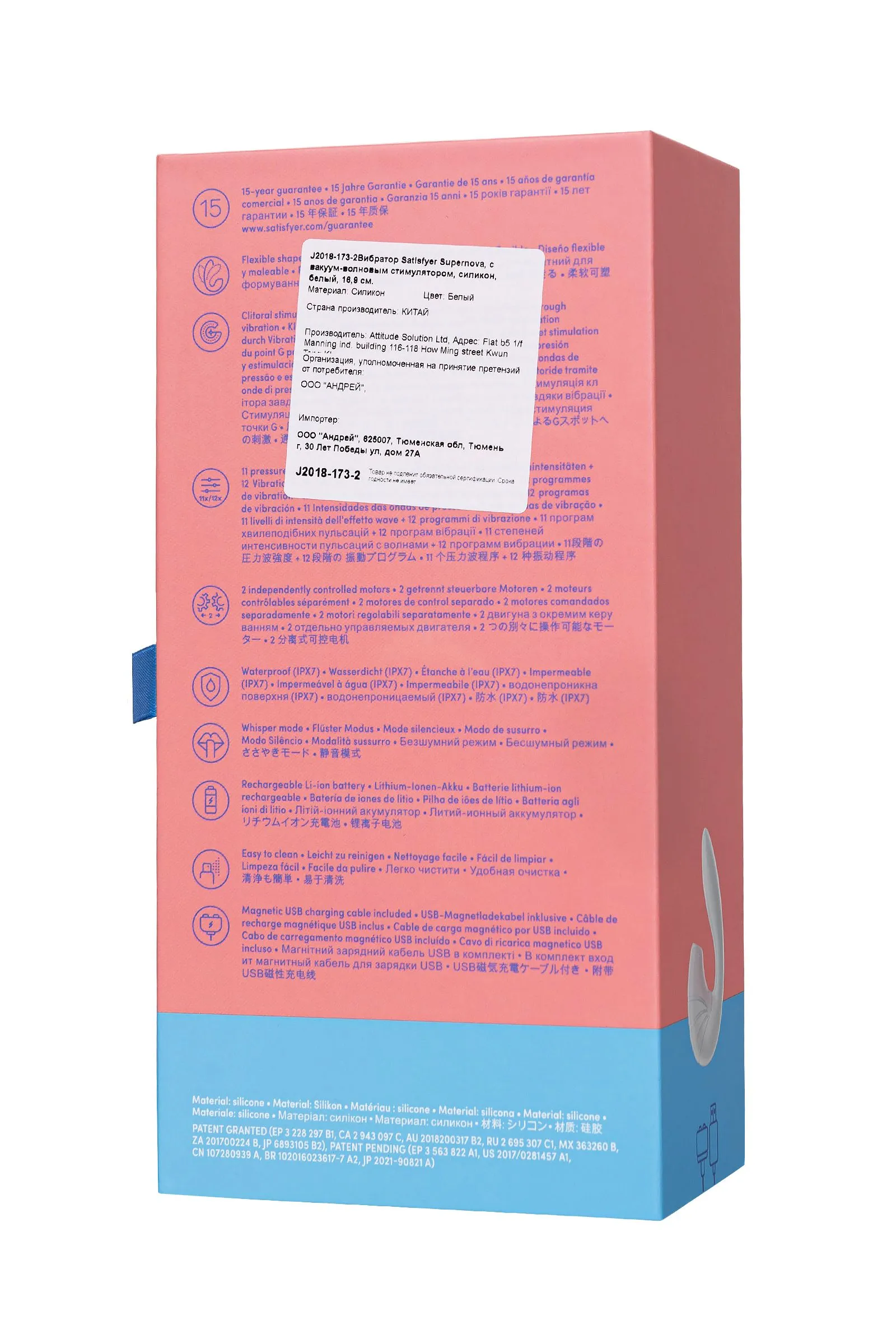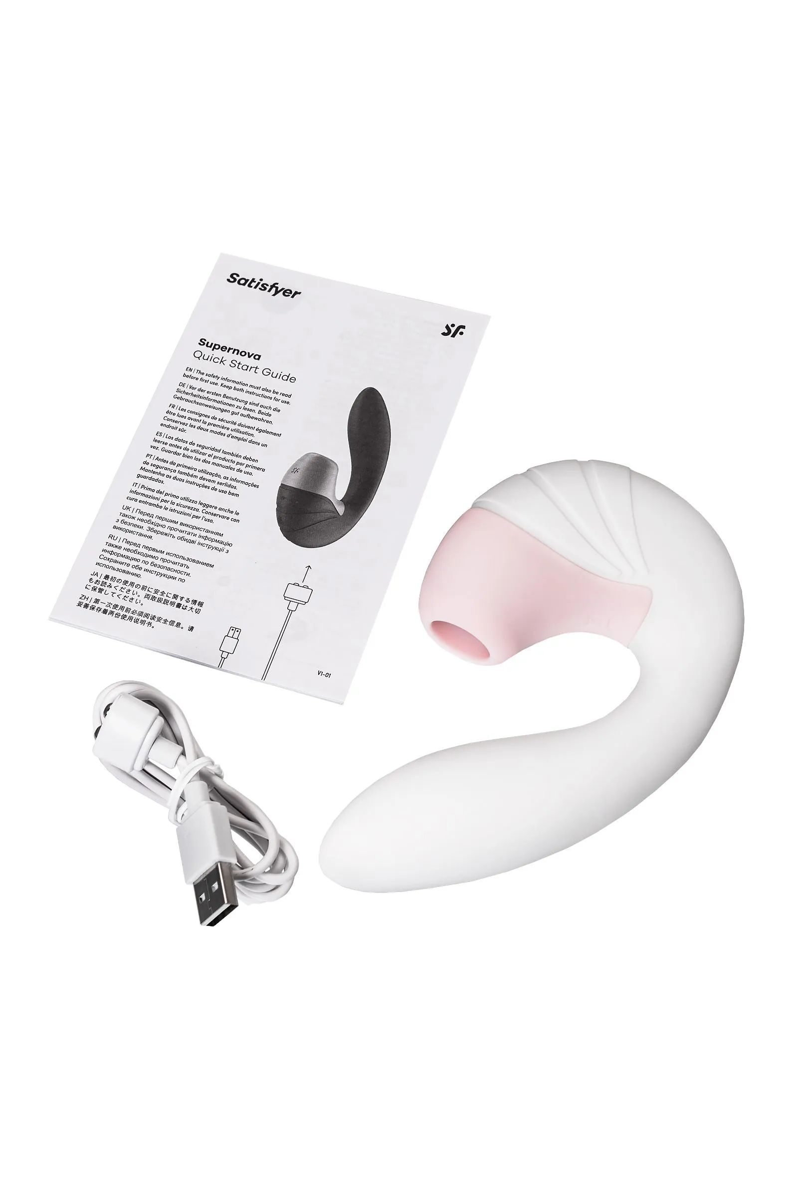 Белоснежная Supernova от Satisfyer способна подарить неземное блаженство и космические оргазмы. Многофункциональный стимулятор сочетает в себе лучшее от вибратора-кролика и вакуум-волнового стимулятора. Supernova стимулирует клитор воздушными пульсирующими волнами. Бесконтактная стимуляция клитора – новейшая запатентованная технология Air Pulse для женских оргазмов. В вашем распоряжении 11 уровней интенсивности вакуум-волновой стимуляции. Гибкая Supernova оказывает стимуляцию зоны G с помощью 10 режимов потрясающей вибрации. Погружной стержень легко регулируется до 45 градусов, подстраиваясь под анатомию каждой женщины. Два автономных мотора открывают множество вариаций воздушной пульсации и вибрации для самых масштабных оргазмов, которые когда-либо могли быть. Эргономичный дизайн продуман для комфортного использования. Широкое основание удобно помещается в ладони, позволяя совершать необходимые движения погружной частью, не отвлекаясь от внешней стимуляции. Потрясающий шелковистый на ощупь высококачественный гипоаллергенный силикон – визитная карточка бренда Satisfyer. Особенности: Возможность одновременного воздействия на клитор и зону G Управление кнопками на гибком корпусе. 10 режимов вибрации и 11 режимов волновой стимуляции. Мягкий, эластичный силикон без запаха, без аллергенов и вредных для здоровья веществ. 100% водонепроницаемый - IPX7. Время работы 60 минут. Перезаряжаемый, USB-кабель, время зарядки 3 часа.