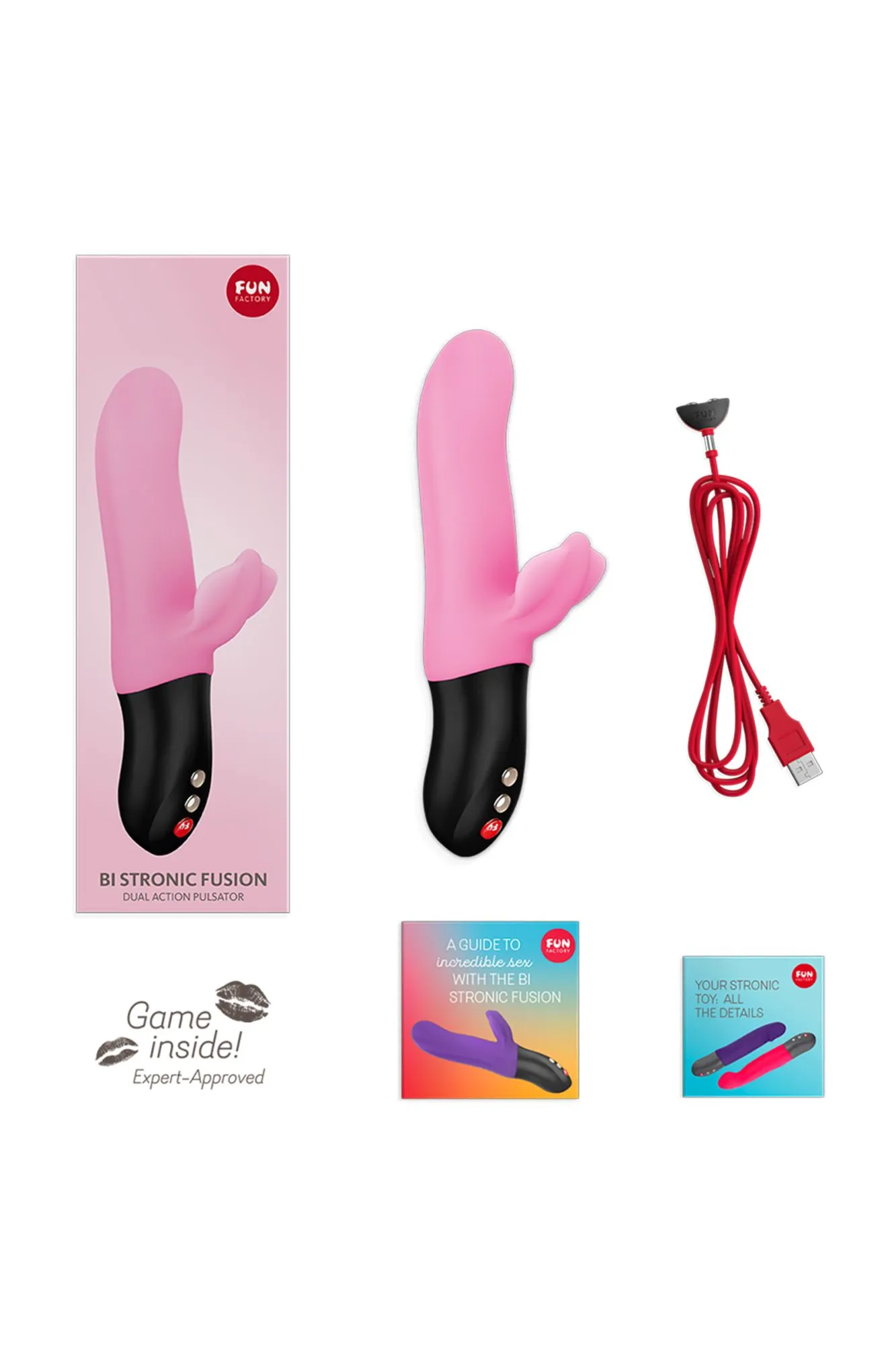 Пульсатор Fun Factory Bi Stronic Fusion — идеальный любовник: • Его многофункциональность поражает: пульсатор совмещает в себе мощный клиторальный вибратор, массажёр точки G или простаты, а также стимулятор влагалища, половых губ или ануса. • Его инновационный принцип работы позволяет насладиться и вибрацией, и пульсацией, которые могут работать вместе или независимо друг от друга. • Его интуитивно понятная панель управления молниеносно отзывается на любое желание, в том числе на мгновенную остановку. • Его расширенный функционал — светящийся индикатор заряда аккумулятора и блокировка замка — помогает держать удовольствие под контролем. • Его водонепроницаемая поверхность никогда не откажет в совместном принятии расслабляющей ванны. • Его зарядка от USB-провода быстро возвращает разрядившуюся игрушку в строй. С пульсатором Fun Factory Bi Stronic Fusion жаркие оргазмы станут постоянными спутниками интимных сессий!