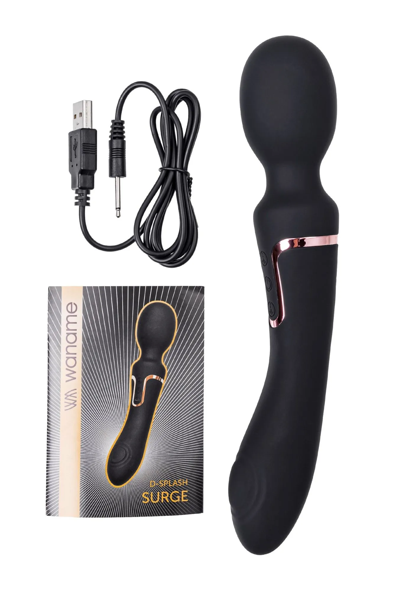 —Двусторонний интимный массажер WANAME D-SPLASH Surge, силикон, черный, 22,5 см