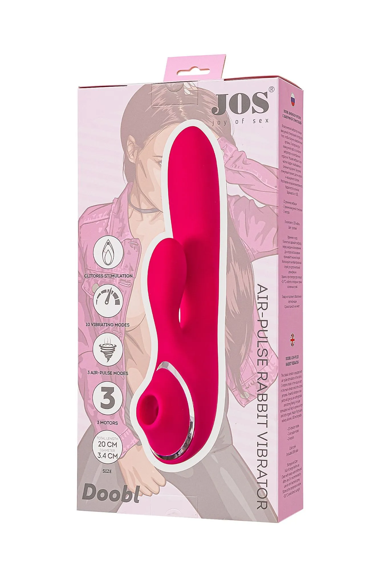 Освежите свои интимные моменты с многофункциональным стимулятором DOOBL от самого необыкновенного бренда JOS! DOOBL – это не просто игрушка, это целый арсенал для вашего наслаждения! Разделенный на две части, этот вибратор-кролик станет верным спутником в мире чувственности. Первая часть - классический вибратор-кролик, предназначенный для максимальной стимуляции зоны G. Вторая часть – вакуумный стимулятор клитора, неотъемлемая часть интимной жизни современной женщины. Обе части могут работать независимо друг от друга, предлагая бесконечные варианты удовольствия. Но это еще не все! Каждая из трех частей оснащена собственным мотором для максимального воздействия. Классический вибратор кролик, вакуумный стимулятор клитора и клиторальный отросток – каждая часть призвана доставить вам неописуемые оргазмы. Изготовленный из высококачественного бархатистого силикона, DOOBL заряжается от USB, что делает его современным и удобным для использования. Не забывайте о правильном хранении и уходе за DOOBL, чтобы он всегда оставался вашим верным спутником. Используйте лубриканты только на водной основе. Перед первым использованием полностью зарядите вибростимулятор. После использования промойте его мыльной водой и дезинфицируйте антибактериальным спреем, чтобы сохранить его гигиеничность и долговечность. Технические характеристики: 10 режимов вибрации 3 режима вакуумной стимуляции 3 мотора Общая длина 20 см Рабочая длина 13,3 см Диаметр 3,4 см *Цена на данную новинку может изменяться в соответствии с курсом валют.