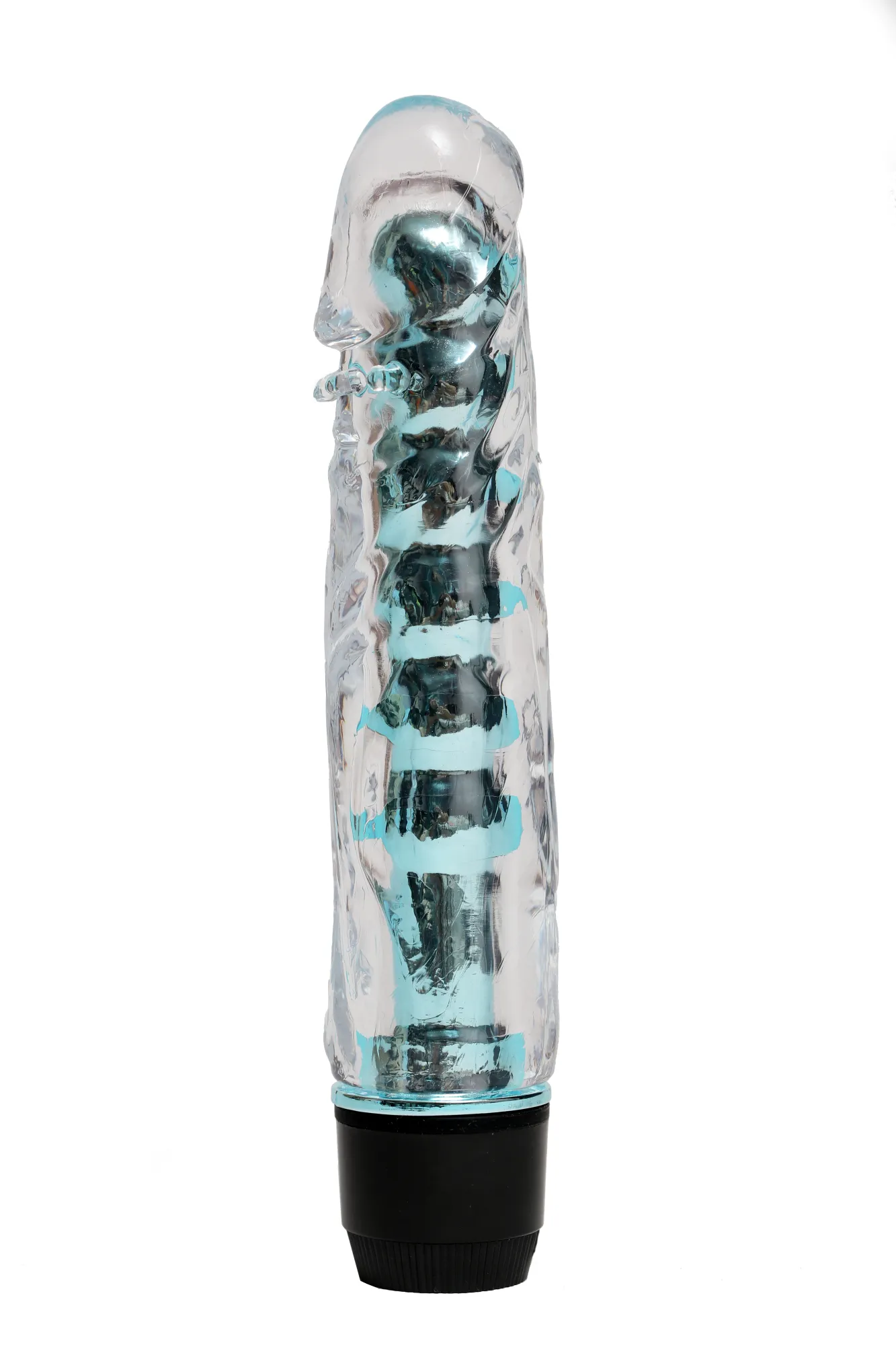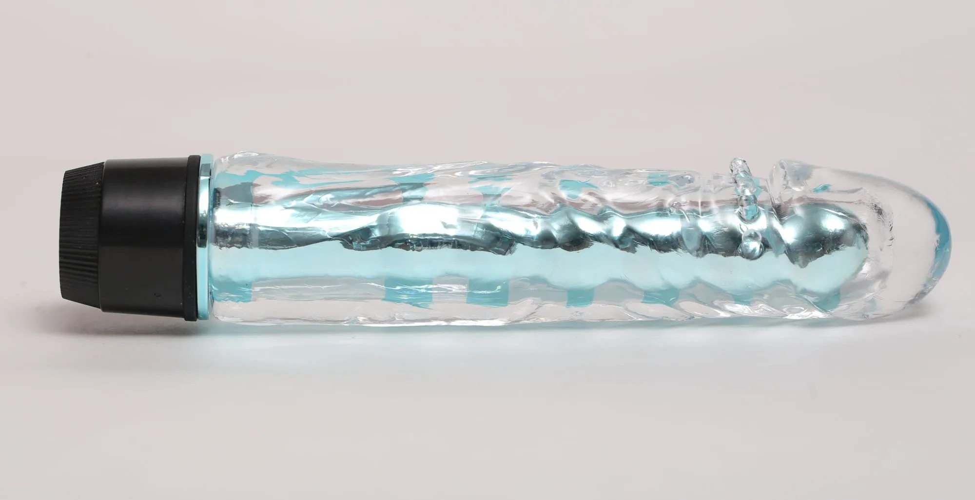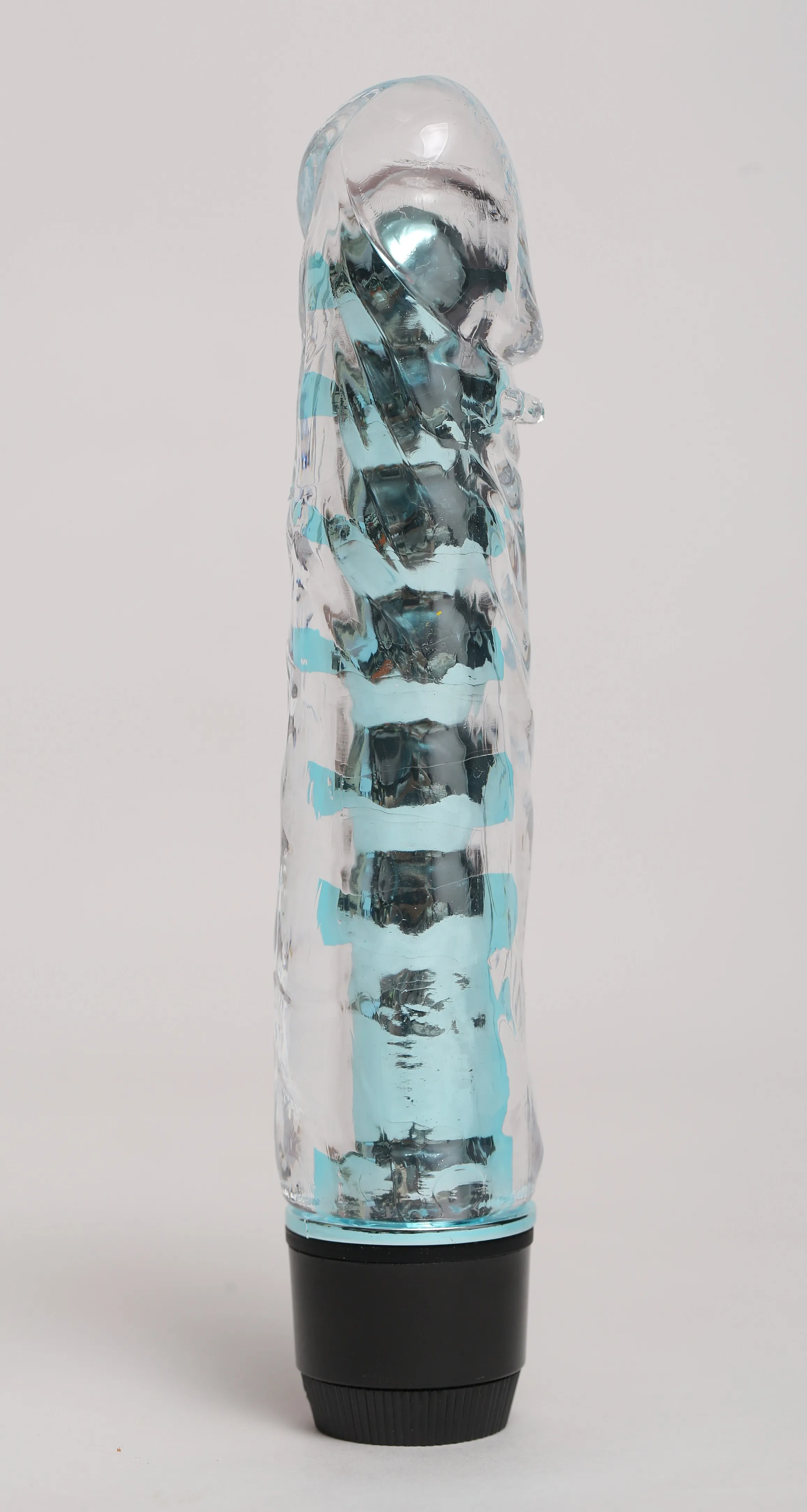 Голубой вибромассажёр, имеет классическую форму. Необычайно приятный, прозрачный материал, вибратор оснащен допольнительными пупырышками под головкой для особенных ощущений. Степень вибрации регулируется при помощи кнопки, расположенной в основании. Работает от 2-х батареек АА (нет в комплекте). Общая длина – 17,5 см, максимальный диаметр -3,5 см.