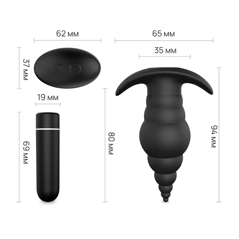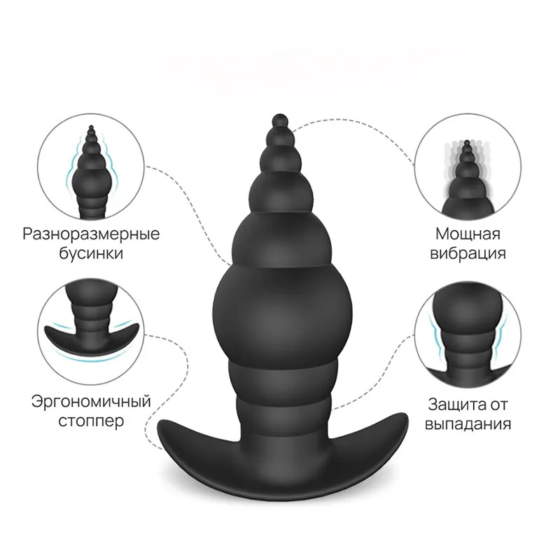 Эргономичная уникальная форма в виде пирамиды- спиральной ракушки с эргономичным утолщением посередине, с поэтапным увеличением “колец” от самого маленького, размером в 3 мм и до 35 мм позволит начать процесс плавно и максимально комфортно, а удобный стоппер на конце - с легкостью изъять гаджет после использования.