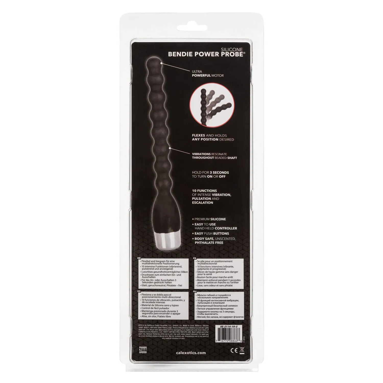 Анальная елочка Silicone Bendie Power Probe от бренда California Exotic Novelties обладает несколькими функциями, которые позволят Вам получить максимум удовольствия во время анальной стимуляции. Ствол елочки, состоящий из шариков одинакового диаметра, может гнуться под разными углами и сохранять свое положение. Подчиняясь движениям Вашего тела, елочка будет сгибаться, благодаря чему массаж ануса будет более точечным и интенсивным. У игрушки есть 10 режимов вибрации, пульсации и эскалации, управлять которыми можно при помощи одной кнопки.