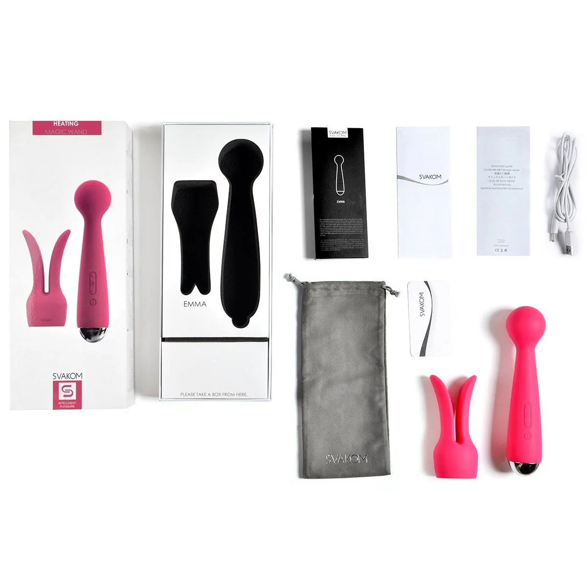 Emma обладает несколькими режимами и скоростями вибрации, функция нагрева и съемная насадка с ушками - вот лишь