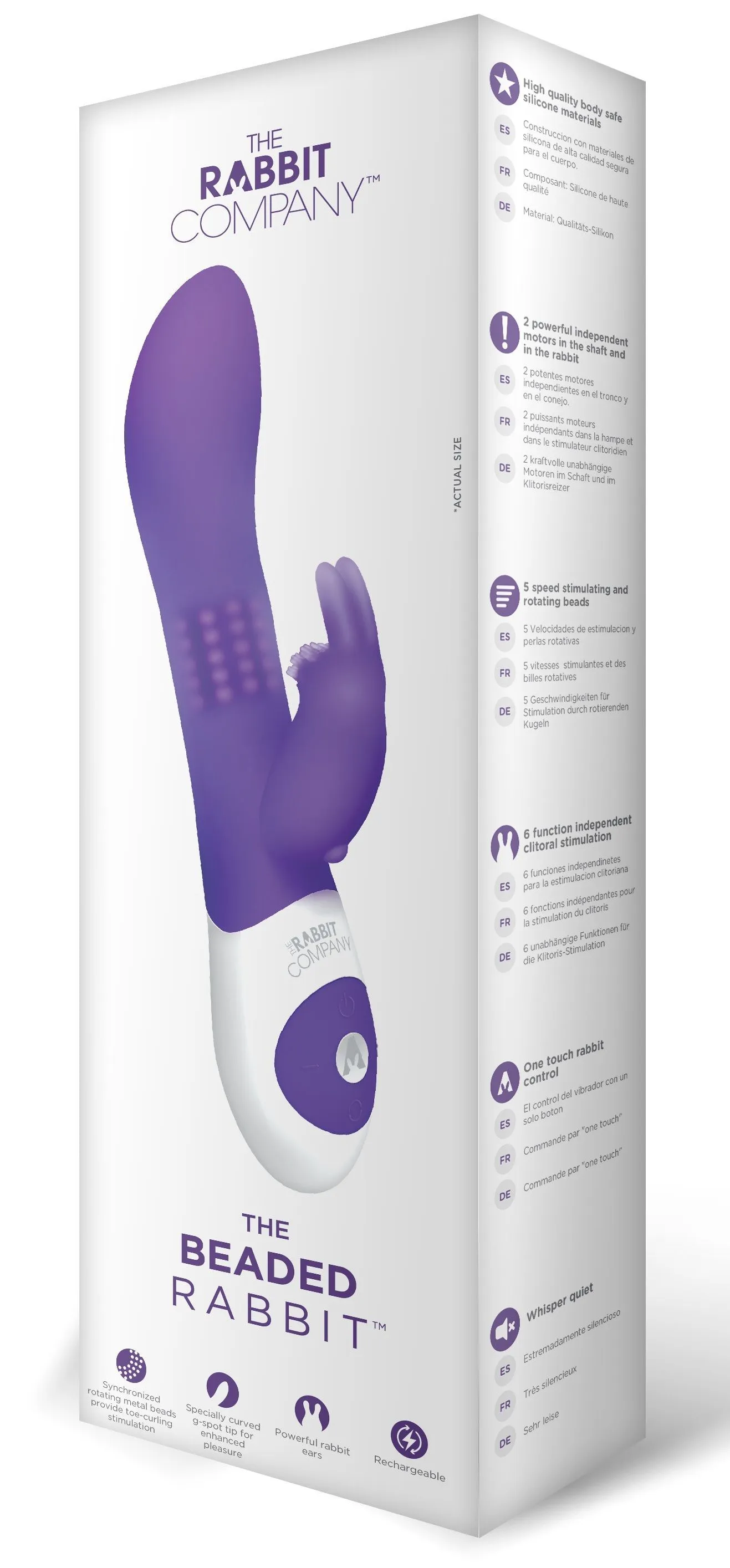 The Beaded Rabbit - это многофункциональный вибратор "кролик" от компании The Rabbit Company. Упругая и изогнутая головка обеспечит направленную стимуляцию точки G, а пять рядов стальных шариков в стволе вибратора предназначены для массажа стенок вагины. В то же время дополнительный стимулятор в виде кролика будет нежно ласкать клитор, делая Ваше удовольствие еще более незабываемым.