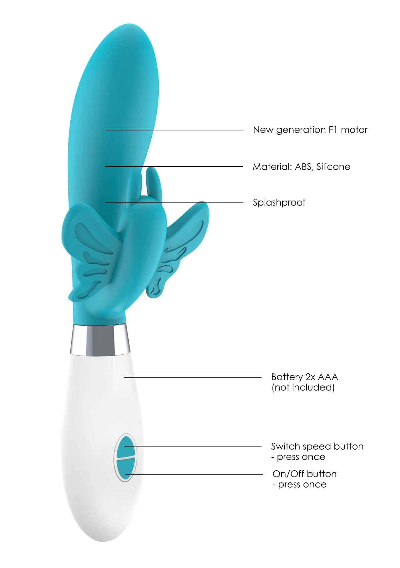 Хранение: очищать игрушку желательно до и после использования. Можно помыть в теплой воде с мылом или воспользоваться специализированным чистящим средством. Перед хранением вибромассажер необходимо хорошо просушить. Желательно хранить отдельно от других силиконовых изделий. Использовать только с лубрикантом на водной основе.