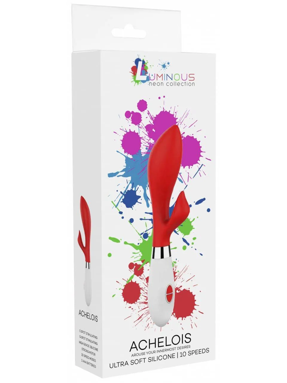 Achelois - вибромасссажер кролик. Эта игрушка имеет округлую утолщенную головку и гибкий клиторальный отросток, что делает стимуляцию более яркой. Вибромассажер имеет два мощных двигателя, по одному в каждом отростке, имеющих 10 функций вибрации, способной достигать на вагинальном стволе до 7000 и на клиторальном отростке до 5200 оборотов в минуту, при этом уровень звука не превышает 50 дБ.
