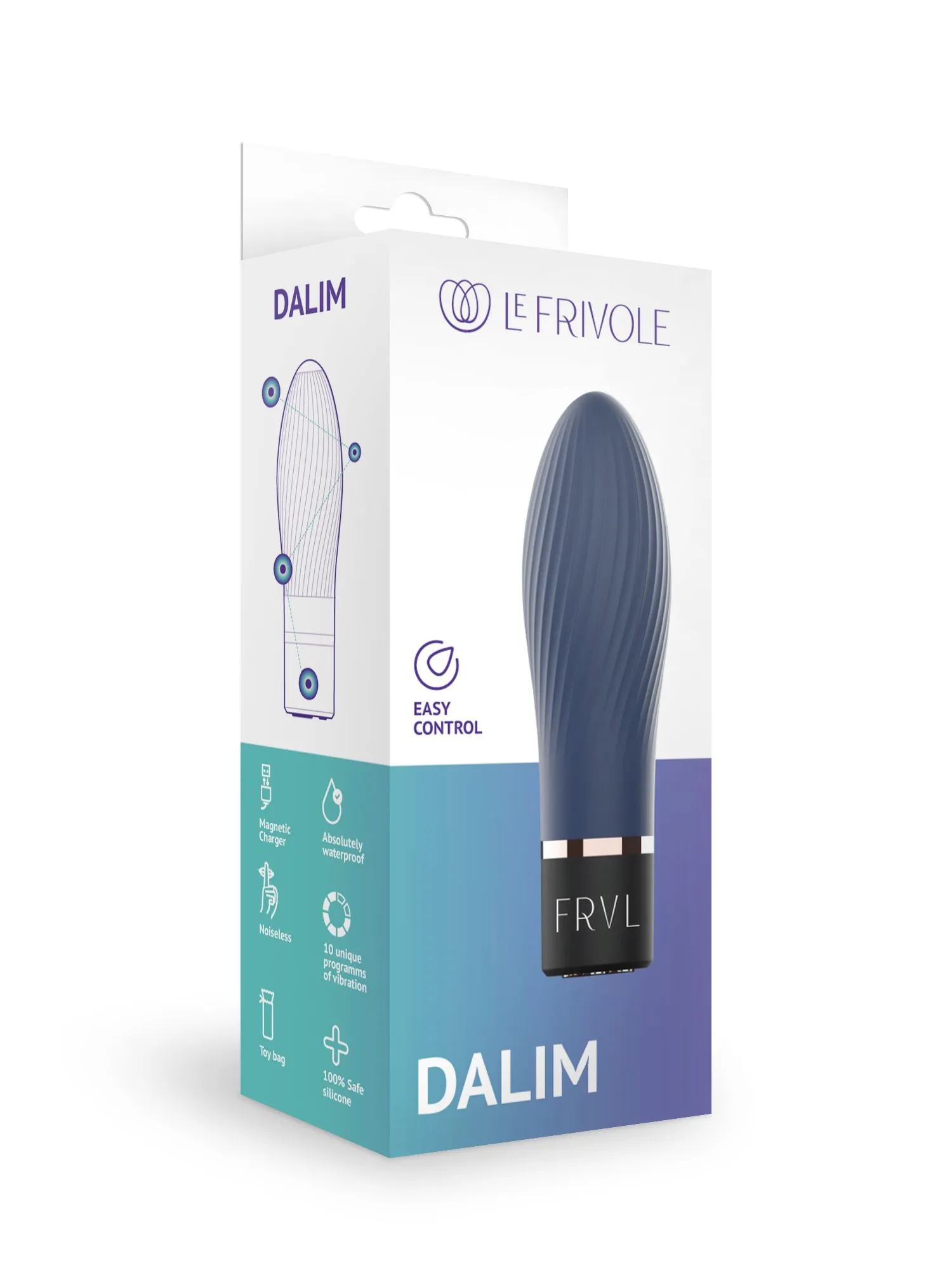 Взяв в руки мини вибратор Dalim вы сразу же почувствуете, что перед вами премиальный продукт – матовое основание и магнитная зарядка дают особые ощущения и возможности использования, а трендовый тихоокеанский синий цвет порадует взгляд. Упругий кончик и волнистый рельеф по длине основной части создадут каскад новых эмоций и ощущений при прокручивании игрушки по эрогенным зонам, в этом вам поможет удобное управление одной кнопкой и 10 режимов вибрации. Чтобы включить игрушку достаточно зажать кнопку включения на 3 секунды. Игрушка полностью водонепроницаема, поэтому вы с легкостью можете воспользоваться ей где угодно!