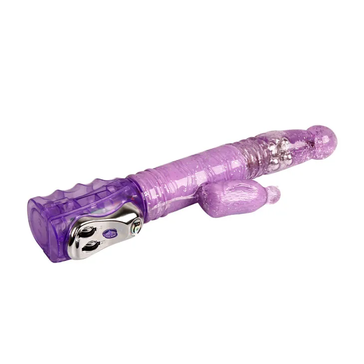 Фиолетовый вибратор с функциями вращения ствола, поступательными движениями и мощным клиторальным стимулятором в форме птички с режимами вибрации и ротации (регулируются колесиками на основании). Вращение осуществляется при помощи металлических шариков , расположенных внутри изделия. Водонепроницаемый. Материал изготовления - ТПР. Работает от 4АА батареек ( нет в комплекте). Рабочая длина 30 см, диаметр 3,5 см, длина стимулятора 8 см, диаметр 3 см.