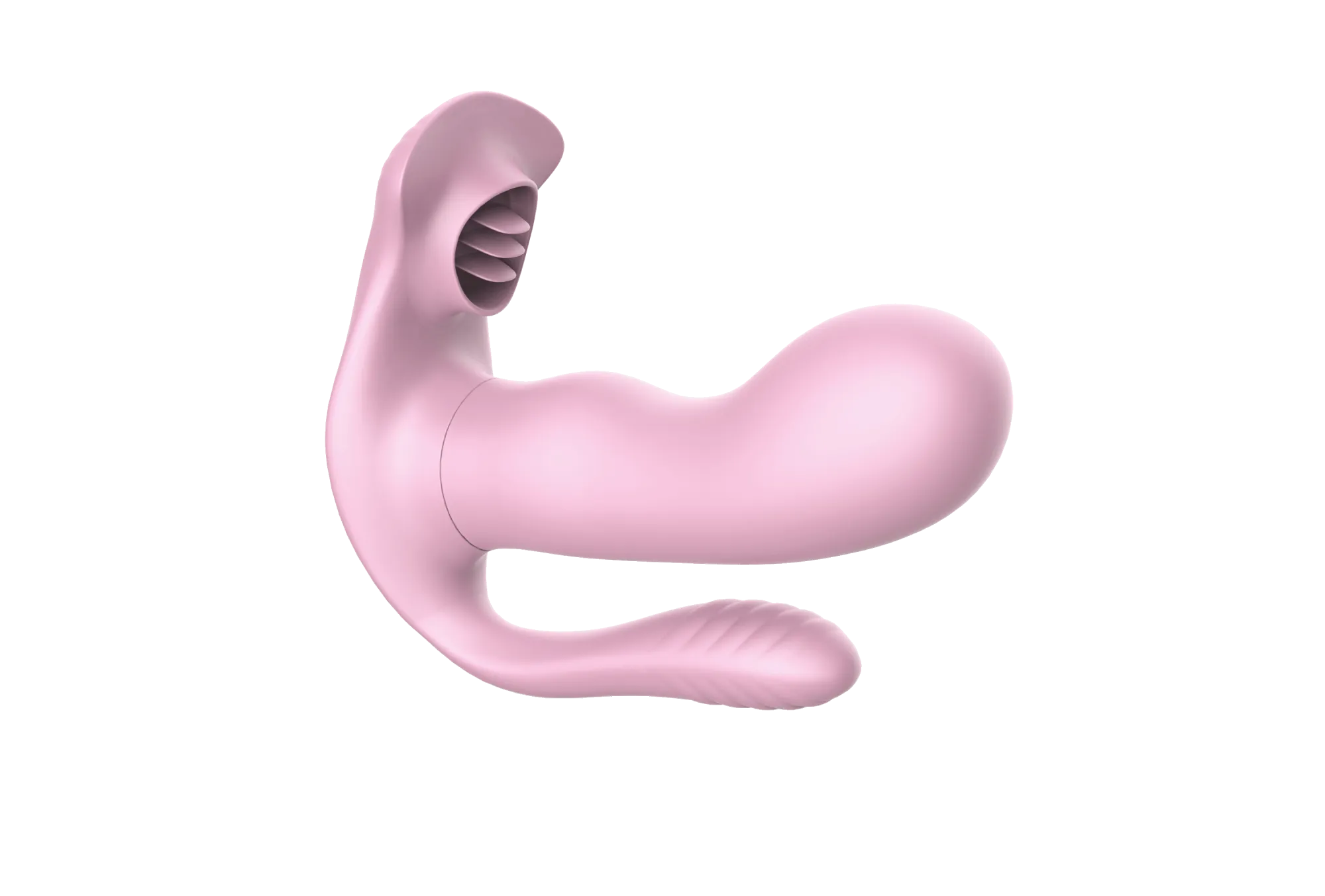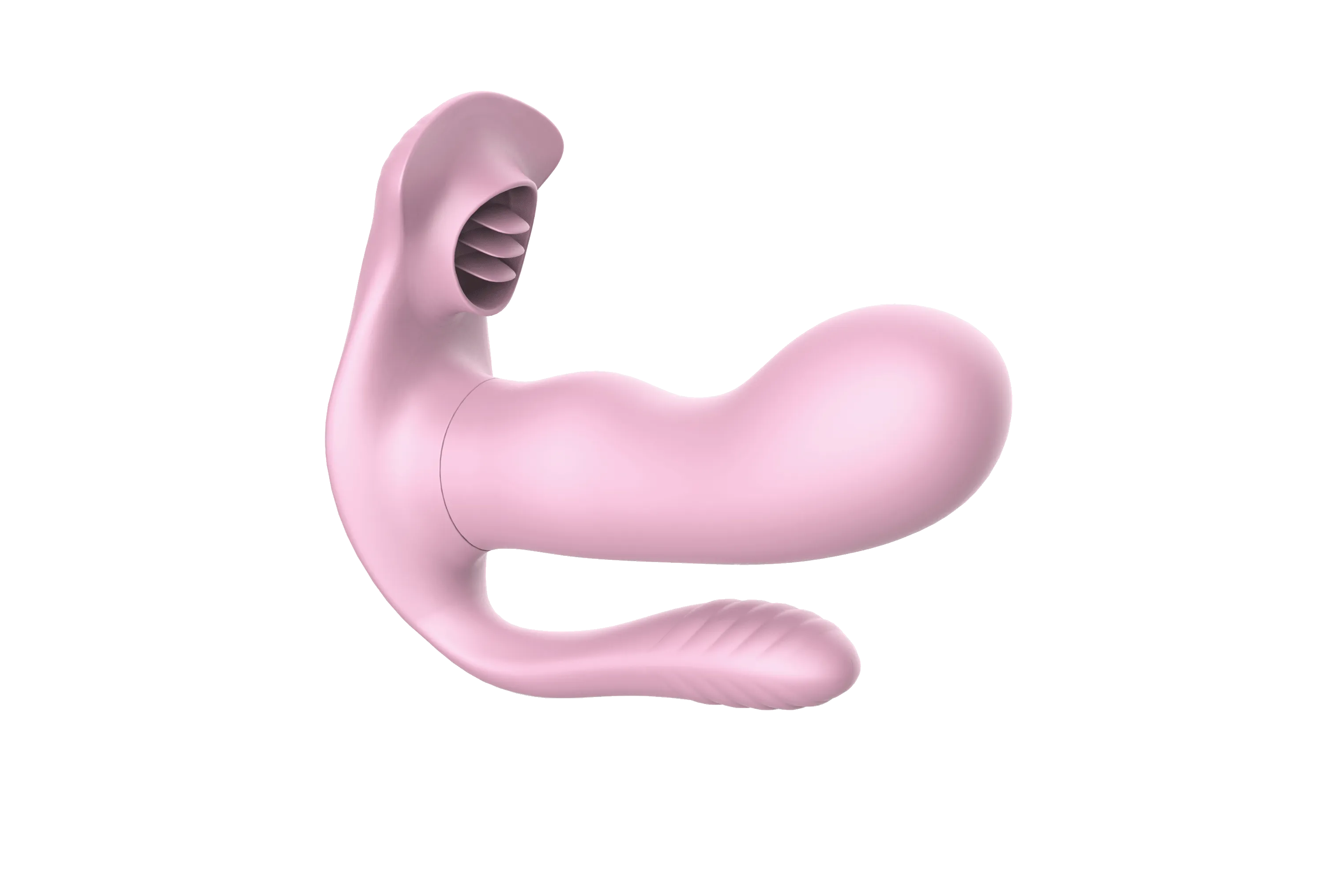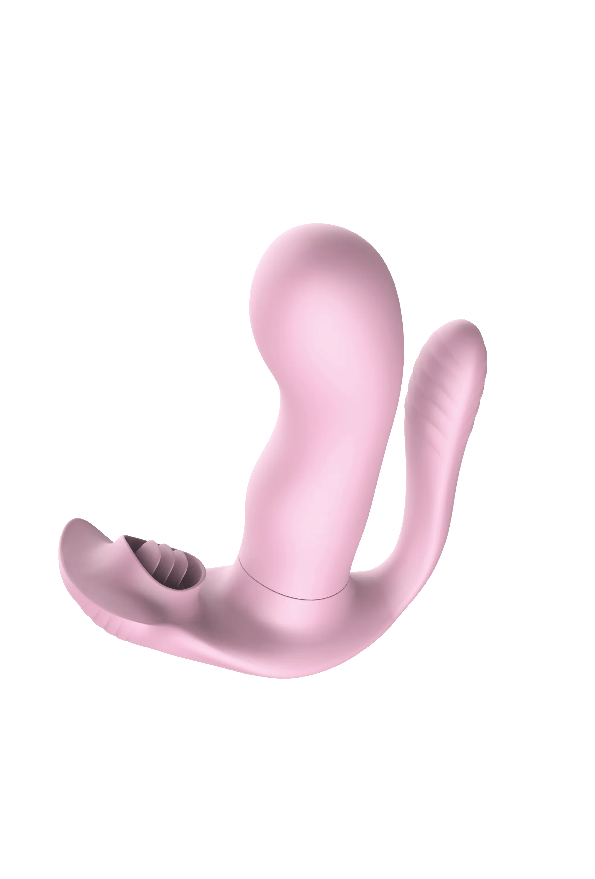 Многофункциональный вагинально-анально-клиторальный стимулятор сочетает в себе эргономичный дизайн и продуманную функциональность. Вагинальная и анальная части оснащены вибрацией с 9 режимами, которые переключаются с помощью дистанционного пульта. Клиторальная часть выполнена в виде трех гибких лепестков, обеспечивающих механическую стимуляцию. Игрушкой можно управлять как при помощи кнопок на ее поверхности, так и при помощи пульта. Длина вагинальной части: 10,5 см. Диаметр вагинальной части: 4 см. Длина анальной части: 7 см. Диаметр анальной части: 2,3 см. Длина клиторальной части: 4,5 см. Дистанция управления пультом: 10–15 м. Перезаряжается от USB. Время работы: до 60 минут. Время зарядки: 90 минут. Девайс водонепроницаемый и идеально подходит для использования в душе или ванной.