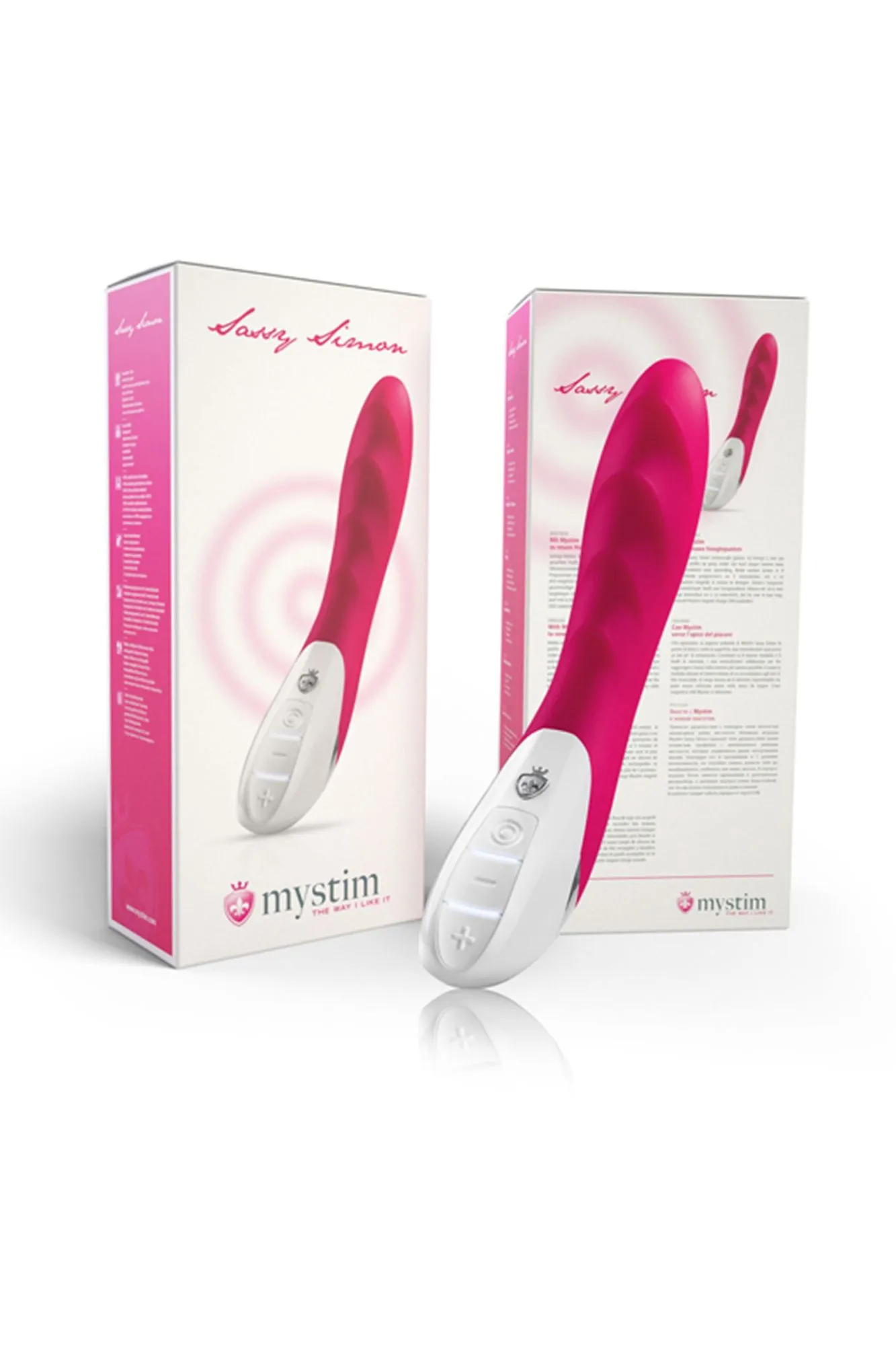 Вибратор Mystim Sassy Simon переводится как «дерзкий Саймон». Ему присуща яркая внешность и колоссальная многофункциональность, которая бросает вызов сексуальной обыденности. Готовы познакомиться с Саймоном поближе? В арсенале Mystim Sassy Simon имеются два мотора. Это значит, что его вибрация распространяется ровно и уверенно по всему стволу, а не только по основанию. 8 программ вибрации и 5 уровней мощности позволяют не ограничивать себя в интимных сценариях и ритме сексуальной разрядки. Ощутимый дразнящий рельеф отлично справляется с дополнительной стимуляцией эрогенных точек. Плавный изгиб ствола учитывает анатомические особенности тела и обеспечивает максимально комфортное проникновение. Полная водонепроницаемость претворяет в жизнь фантазии, в которых присутствуют бодрящий душ или расслабляющая ванна. Немецкое качество и премиальные материалы берут на себя заботу о надежности работы девайса. Mystim Sassy Simon может на деле доказать безграничную любовь к удовольствию — позвольте ему сделать это.