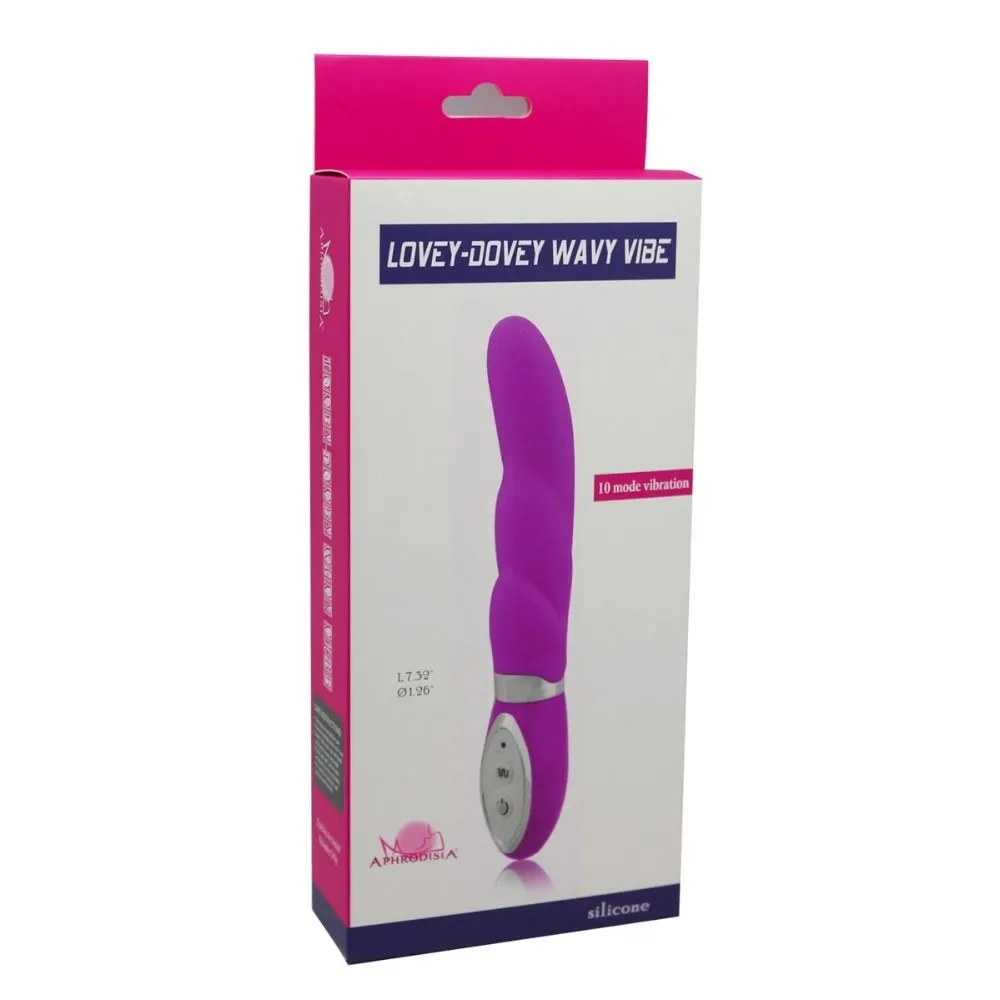 Lovey-Dovey Wavy Vibe - это многоскоростной вибратор, который заставит Ваше сердце биться чаще и доставит массу ярких эмоций. У вибратора есть 10 режимов вибрации, среди которых Вы сможете выбрать режим, подходящий именно Вам, или экспериментировать, постоянно испытывая новые будоражущие ощущения. Благодаря своей изогнутой головке, игрушка способна простимулировать точку G, вознося Вас на вершины блаженства.