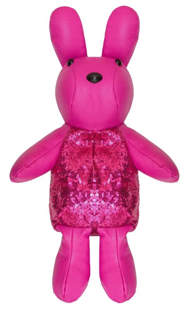 Небольшой кожаный рюкзачок ярко-розового цвета в виде забавного зайчика обязательно придется по душе любому ребенку! Он может служить не только в качестве довольно вместительного рюкзака, но и в качестве очаровательной игрушки. Рюкзак декорирован яркими розовыми пайетками, которые будут весело сверкать на свету. У зайчика есть одно отделение на молнии, которое располагается сзади. Лямки регулируются по длине, а при необходимости их и вовсе можно отстегнуть. В таком рюкзачке ребенок всегда сможет с удобством переносить все свои самые ценные вещи.