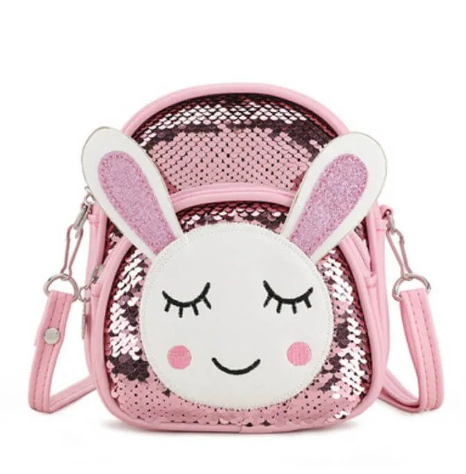 Очаровательный розовый рюкзак с ушками, усыпанный пайетками.