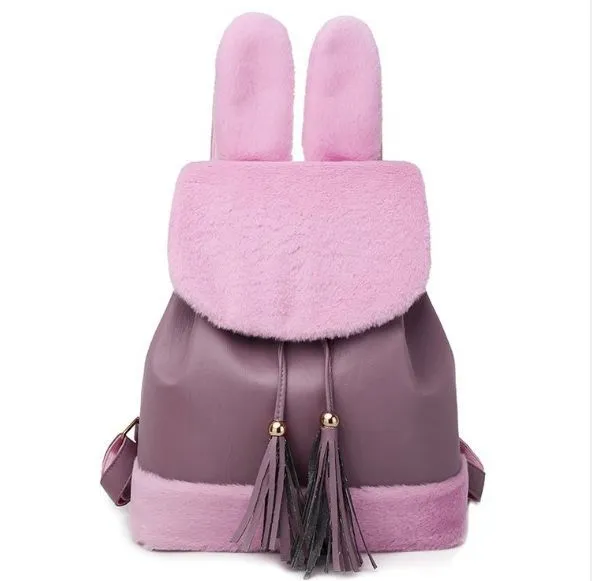 Фиолетовый рюкзак из экокожи с пушистым дном и ушками.